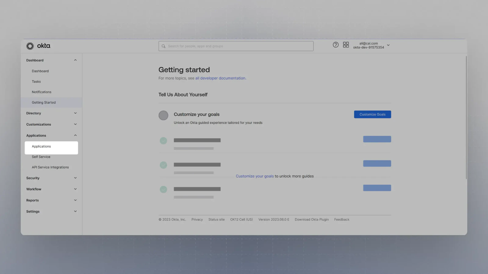 3. Create an application with your OIDC provider. For example, in Okta, once you create an account, you can click on Applications on the sidebar menu: