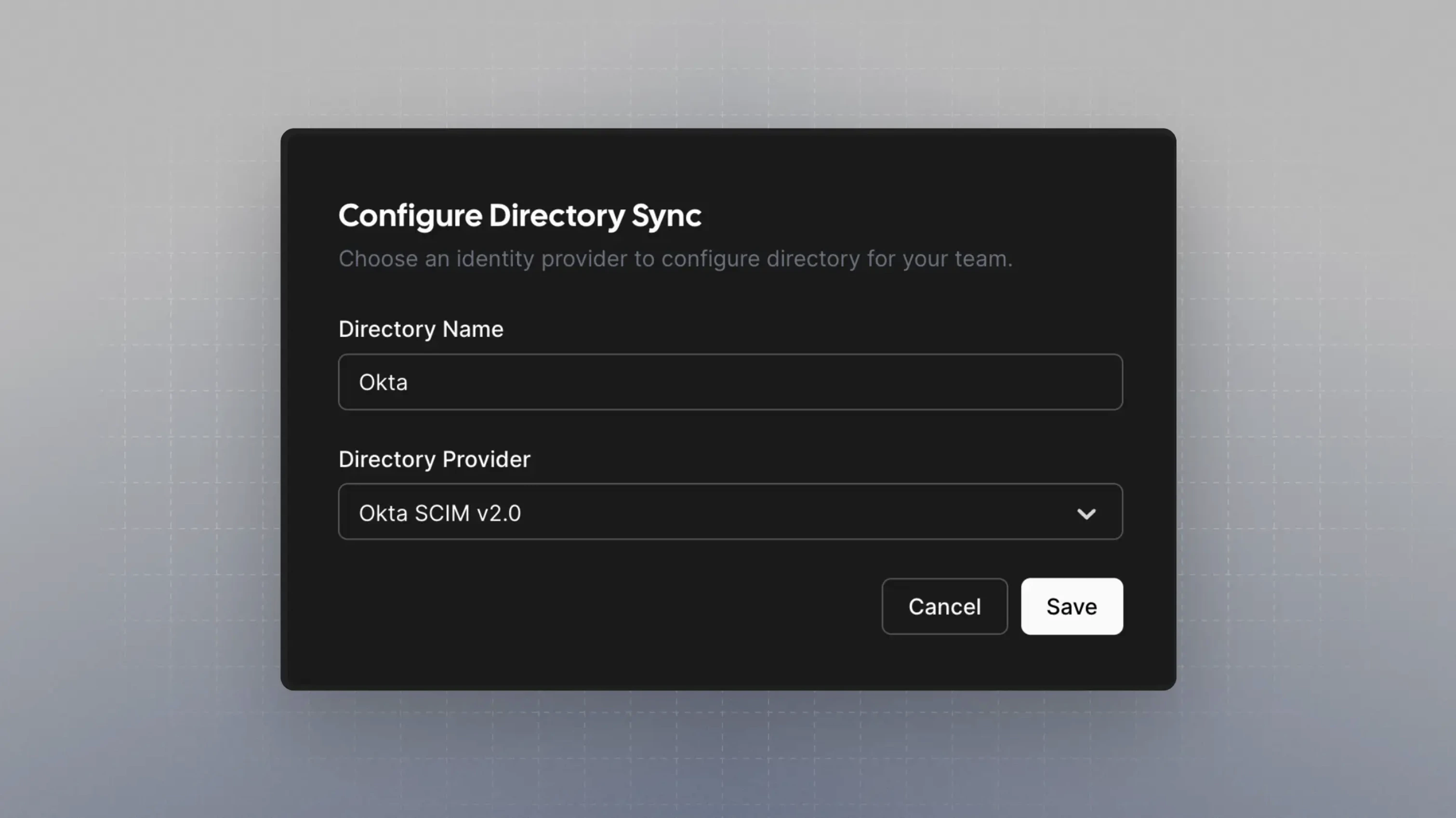 8. In the “Configure Directory Sync” from choose a directory sync name and choose “Okta SCIM v2.0” as the “Directory Provider”